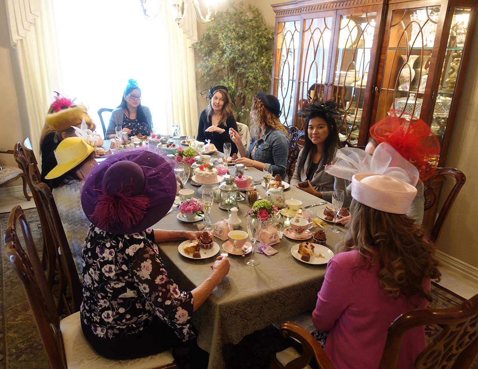 The traveling tearoom that comes to you! You choose the location and guests. I provide everything else – the tea, food, linens, teacups, tableware, silverware, even the soothing music if you like. I will set your table, cater and serve the delicious food, brew and serve the tea, and stay afterwards to do the dishes so you can focus on your guests. I can also host your indoor or outdoor event at my home for a complete pampered experience for you and your guests! Our afternoon tea menu includes delicious finger sandwiches, sweet and savory bites, homemade scones, fresh fruit, fresh-baked pastries, and scrumptious cakes. Food and tea are served using vintage dishes, china, cake stands, towers, and pretty teapots. The Traveling Teapot is available for any occasion – parties, showers, birthdays for little girls, birthdays for girls who are young at heart, get-togethers, hen parties, bridge clubs, gentlemen lunches, business meetings, just because it is a Tuesday, and more!
